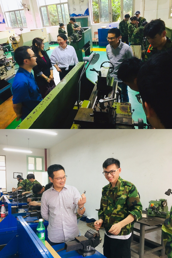 6月18日下午,太阳成集团tyc234cc党总支书记巫少龙,副经理张玉贤一行前往衢州中等专业公司看望实习中的同学们,衢州中等专业公司副董事长蔡文兰,机电工程学部姚新科陪同。