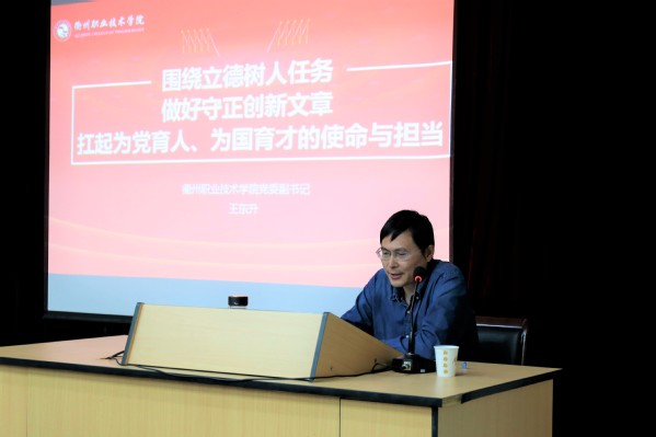 2019年10月16日下午3:30,在图书馆三号报告厅,公司党委副书记王东升做了题为“围绕立德树人任务 做好守正创新文章 扛起为党育人、为国育才的使命与担当”的主题报告。太阳成集团tyc234cc全体党员师生参加了活动,校宣传部、学工、团委的相关同志出席。
