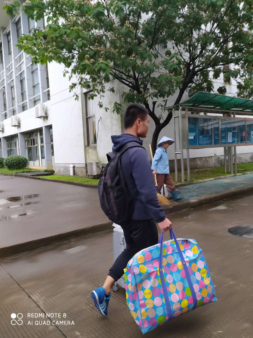 杨金城、谢加军帮助同学搬运行李。
