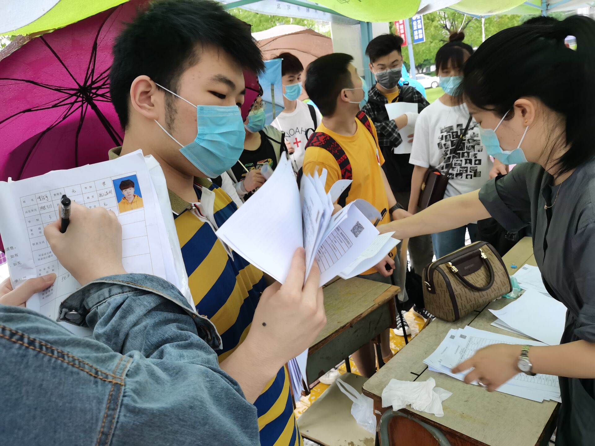 2020年6月5日,毕业生返校日当天,有一群青年主动承担起志愿服务工作,而他们本身也是毕业生,而且还有一个特殊的身份,中共预备党员。