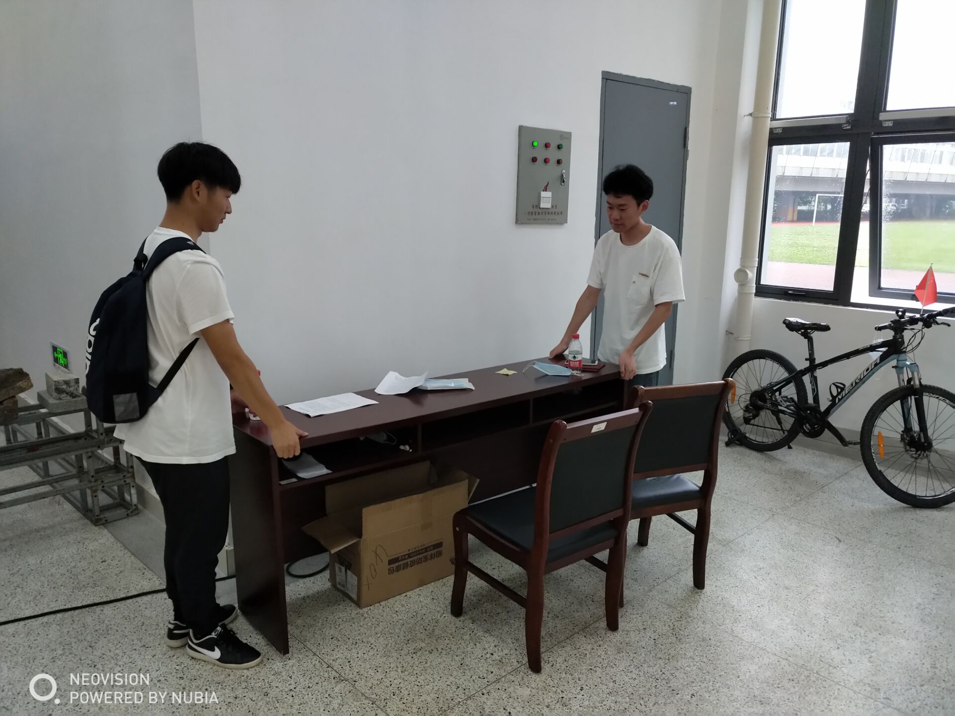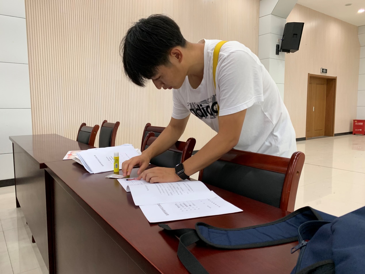 周振康、叶佳乐帮忙布置会场。