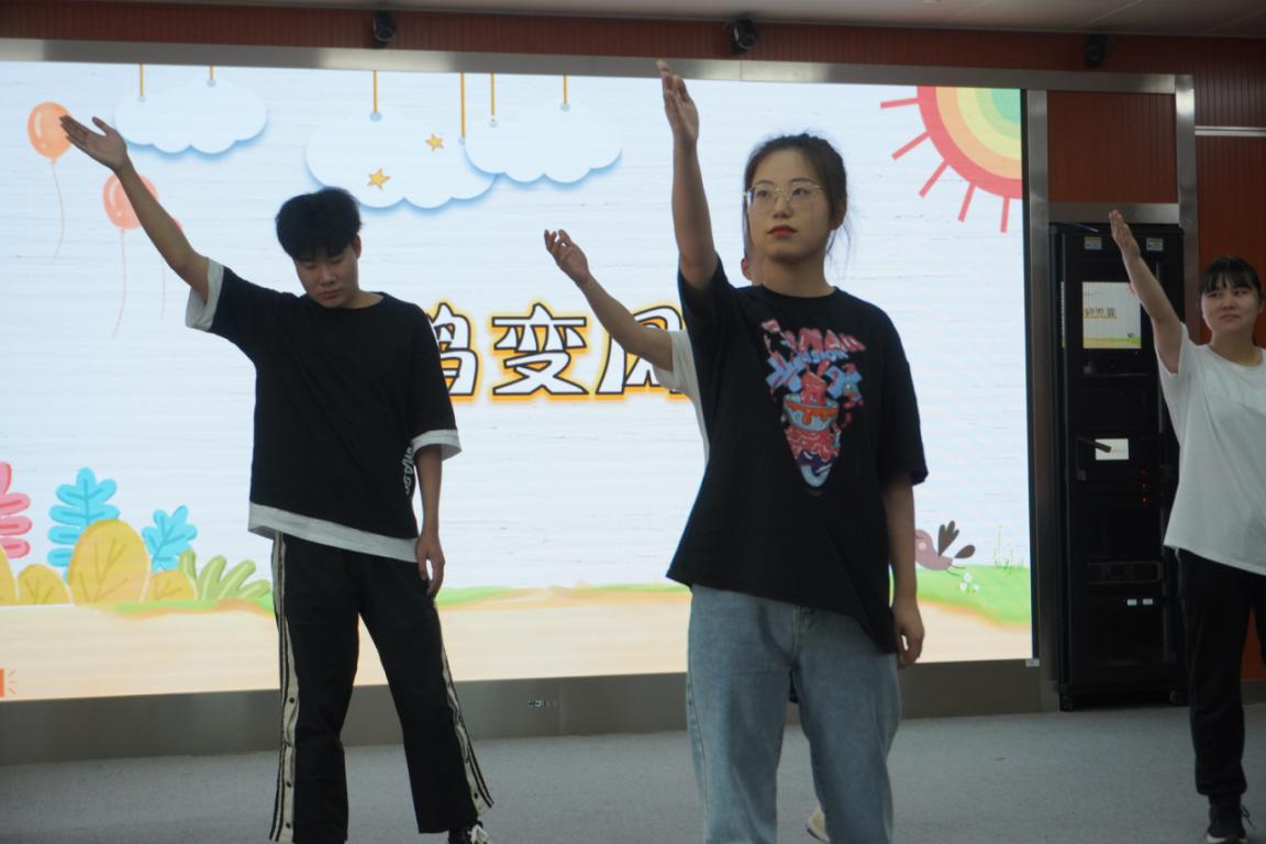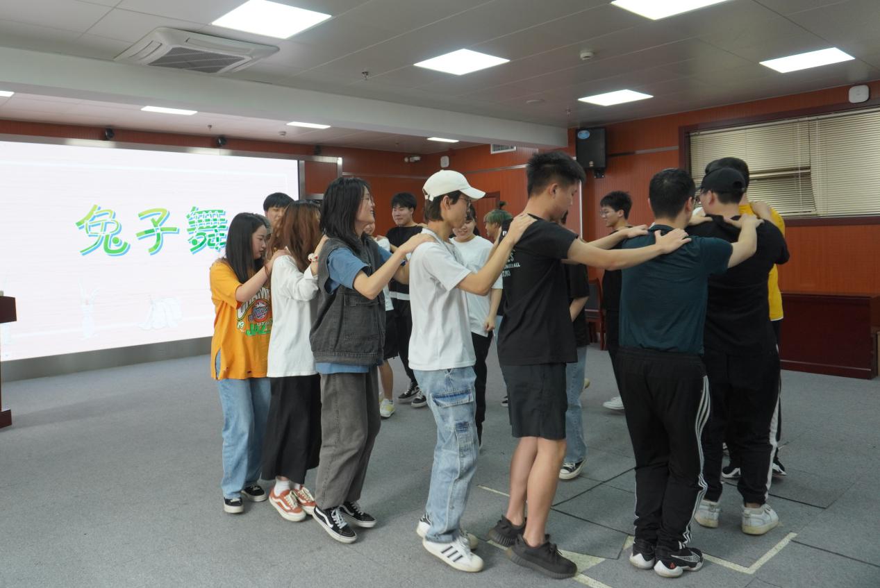 伴随着兔子舞的音乐,在领舞的带领下,同学们也渐渐跟着音乐舞动了起来,气氛high爆全场。