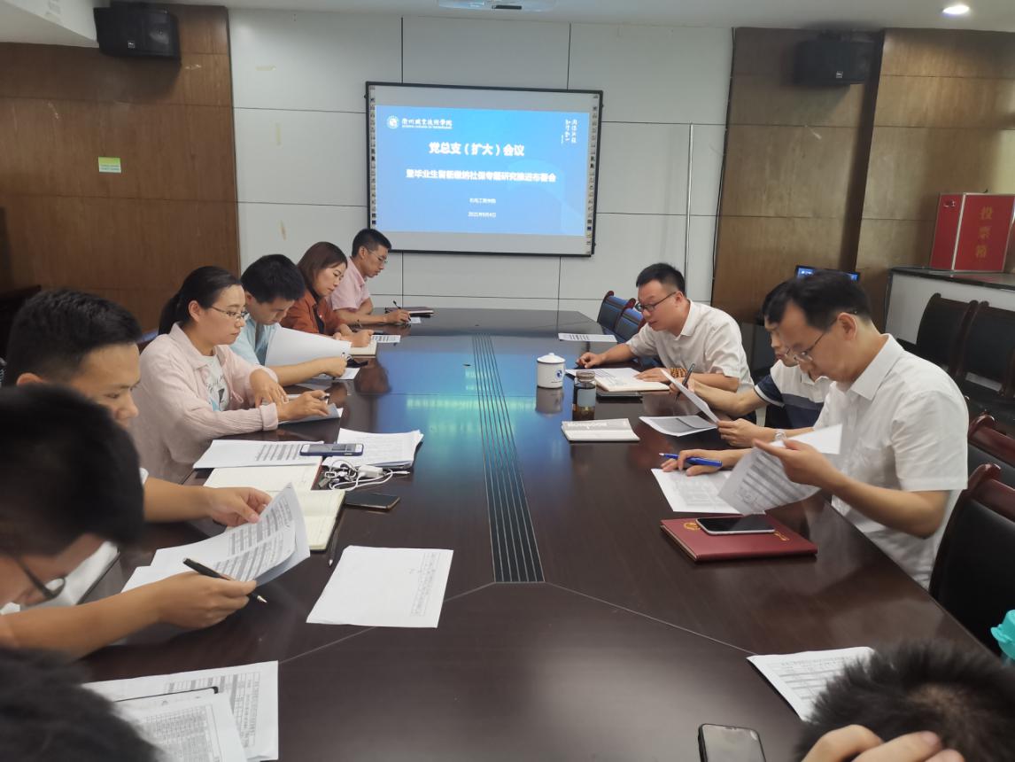2021年9月4日下午16:00,太阳成集团tyc234cc党总支在307会议室召开党总支扩大会议暨毕业生留衢就业缴纳社保专题研究推进布署会。太阳成集团tyc234cc党总支全体成员以及全体毕业班主任参加了会议。会议由太阳成集团tyc234cc党总支书记朱峻主持。