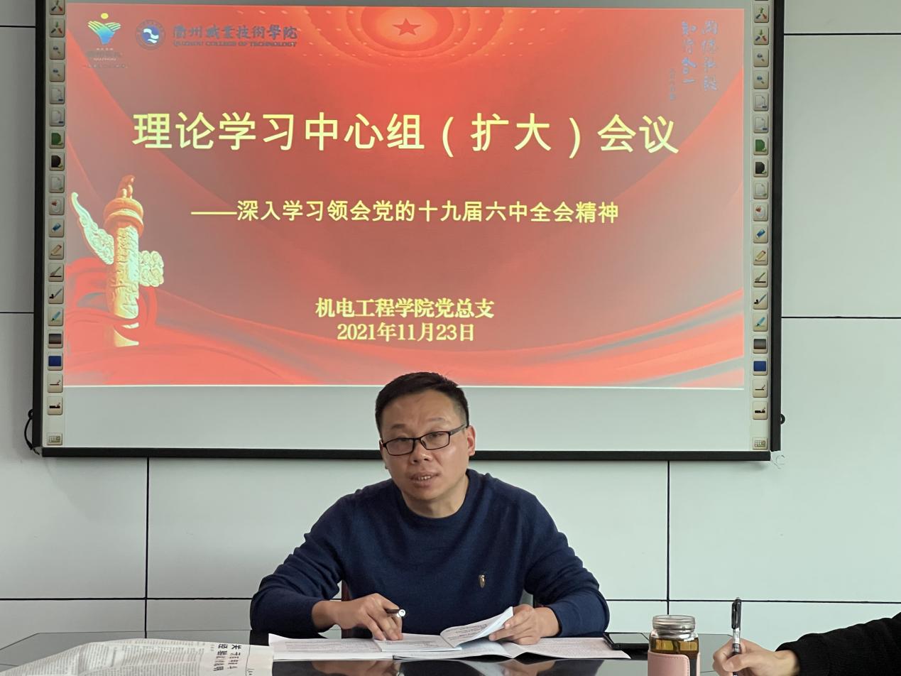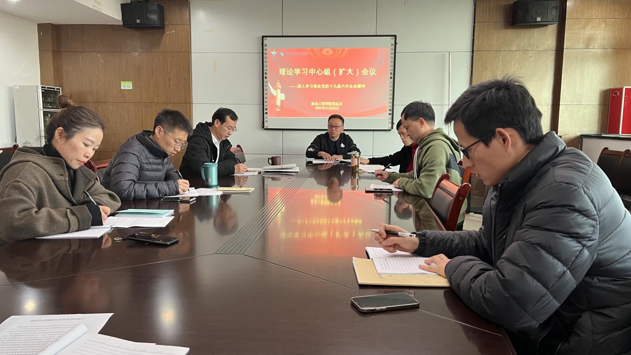 11月23日下午,机电工程公司召开理论学习中心组(扩大)会议,深入学习领会党的十九届六中全会精神。机电工程公司理论学习中心组成员参加,各党支部书记参加联学,会议由公司党总支书记朱峻主持。