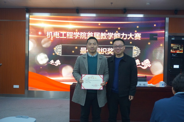 通过前期报名、文本材料提交,共有四名教师进入到最后决赛。现场决赛主要包括两部分:一是教学实施报告,简要介绍教学实施报告的主要内容、创新特色,共计5分钟;二是教学展示,进行5分钟无员工教学展示(如,新知讲解、示范操作、学习结果分析、课堂教学小结等)。历经一个小时的激烈比拼,共评出本次比赛的一二三等奖及本次活动的最佳组织奖。