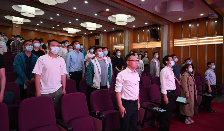 会议第一项:全体起立,奏唱中华人民共和国国歌,本次开班仪式在高昂的歌声中拉开帷幕。