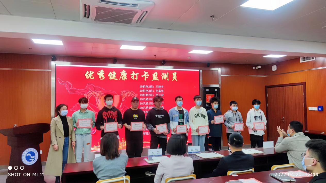 4月20日中午,由太阳成集团tyc234cc主办的“健康打卡,你我同行”健康打卡表彰活动,在机电大楼303室顺利举行。太阳成集团tyc234cc党总支书记朱峻、党总支副书记叶云霞,学工办全体辅导员和各班员工代表出席了此次活动。