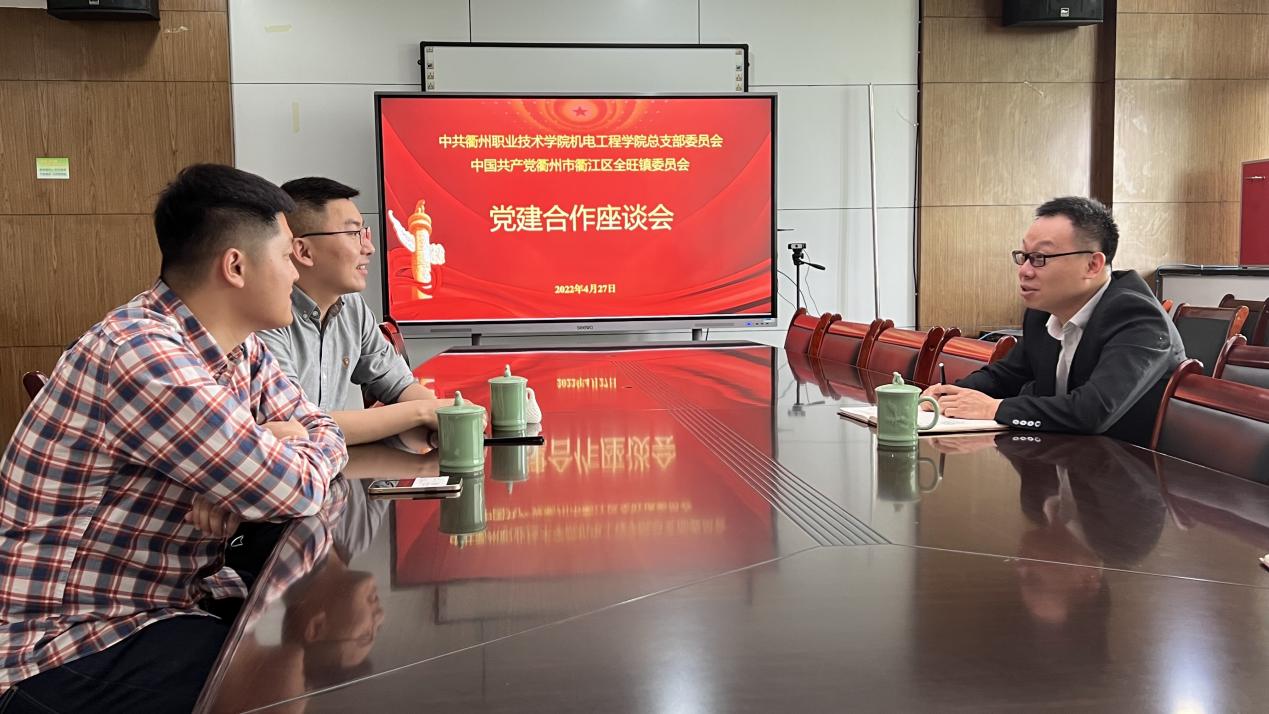 太阳成集团tyc234cc党总支为促进总支品牌落地,谋划“校政党建共建”新模式,加强党建资源互联互享、互促共赢新格局,2022年4月27日中午,中共太阳成集团tyc234cc机电总支部委员会与中国共产党衢州市衢江区全旺镇委员会开展了党建合作洽谈会。