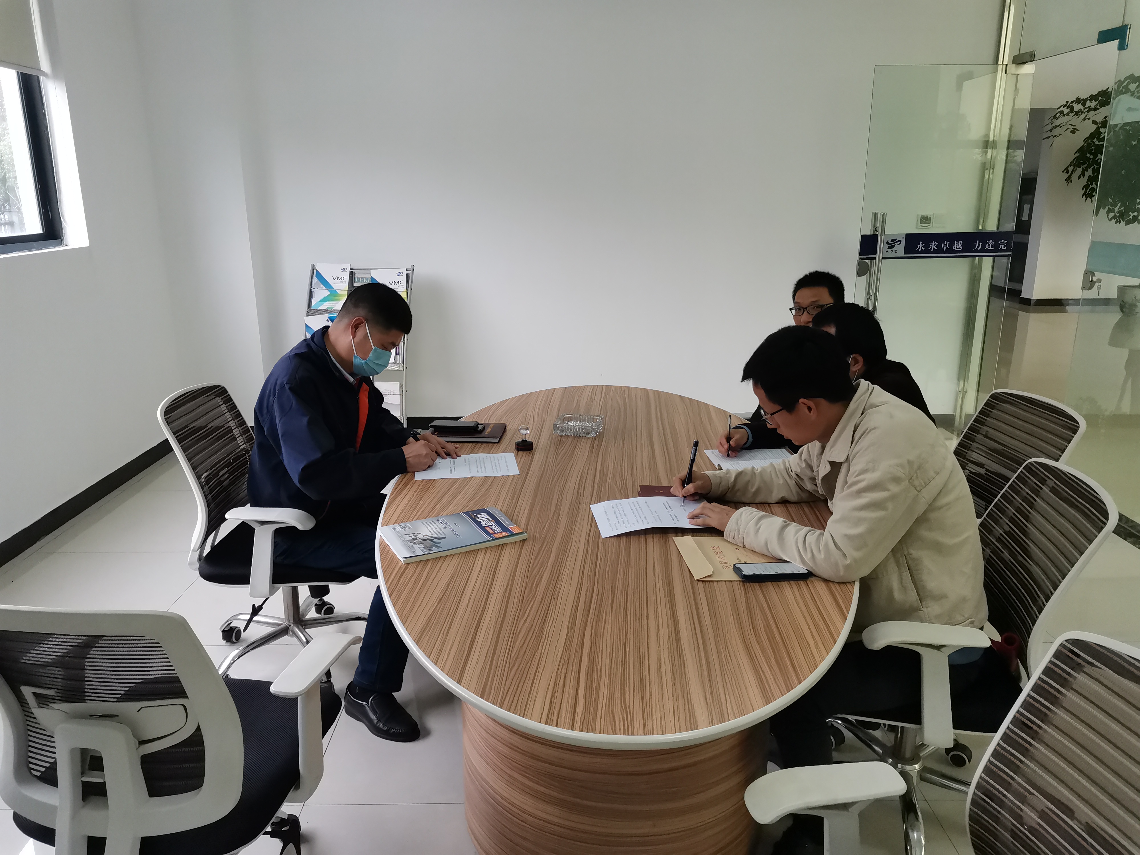 校企双方同志对特色校企支部共建、省级大师工作室创建、中高级工培养、企业内部员工学历提升、企业软实力提升、人才培养及“招人留人”等方面进行了深入有益的探讨,敲定了双方支部共建工作开展工作细则。随后双方支部书记郑重签下校企支部共建协议。最后,在曾燕平同志、詹雷军同志带领下,到访同志深入园区实地考察了企业的研发生产办公大楼建设现场。之后,双方代表合影留念,约定将共同推进校企支部共建、专业任务深度长期合作。