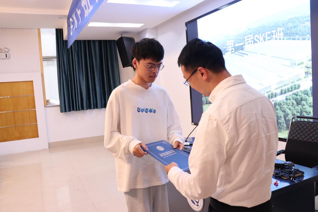皮尔轴承有限公司王伟厂长向在场的同学们详细介绍了企业的发展现状及前景,阐述了管培生岗位的工作内容、薪酬条件、晋升机制、岗位培训等内容,希望同学们珍惜机会,积极参与“SKF订单班”的学习及实训,切实提高工作能力,为自己今后的实习和就业打好基础。会上王伟亲自给“SKF订单班”的同学颁发录取通知书。
