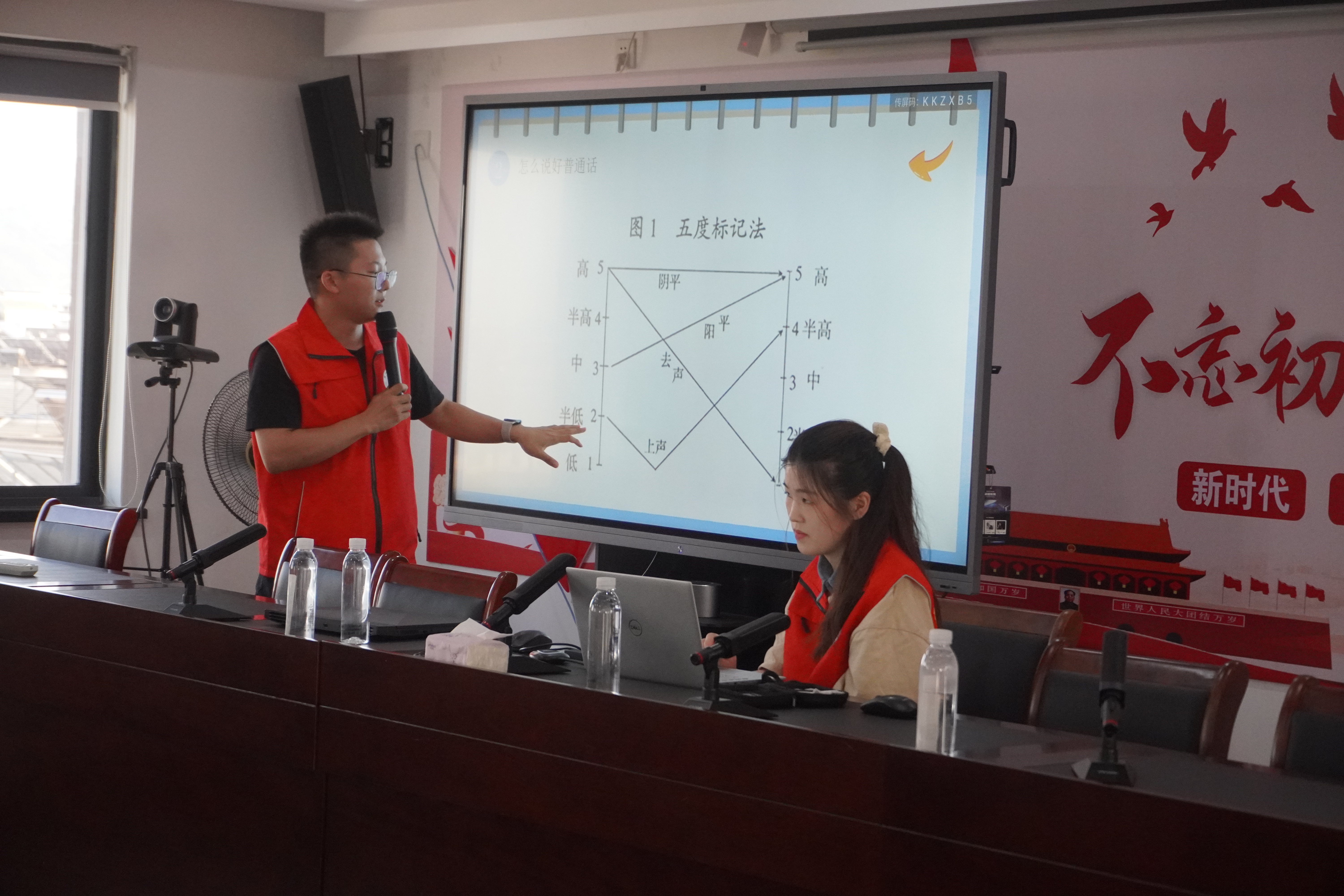 随即,队员们趁热打铁,由许智超同学带来《如何说好普通话》主题分享。许智超同学通过“为什么要讲好普通话”“怎么讲好普通话”等方面进行了教学分享和朗诵展示;小朋友们也积极参与互动,争相举手起立大声朗诵,语句流畅,吐字清晰,现场纷纷为其鼓掌。