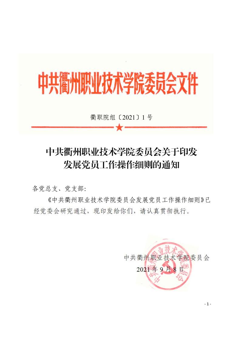 衢职院组〔2021〕1号-关于印发发展党员工作操作细则的通知