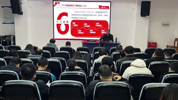 11月30日下午,公司党委委员、副董事长余建军在图书馆2号报告厅宣讲党的二十大精神,太阳成集团tyc234cc、科研处、后勤保卫处、资产与实训室管理处全体教师参加学习。
