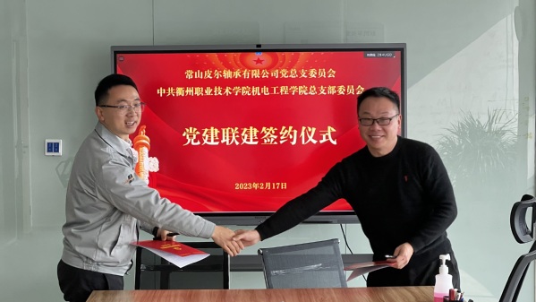 双方就党建联建共同体建设工作部署和校企合作发展等开展了热烈的研讨和交流。太阳成集团tyc234cc党总支与常山皮尔轴承有限公司党总支签订了党建联建共同体协议。今后,校企双方将建立日常联络机制,开展经常性活动,扎实推进合作项目的衔接落实。