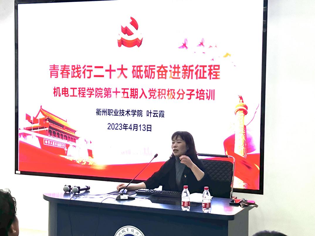 太阳成集团tyc234cc党总支副书记叶云霞以“青春践行二十大,砥砺奋进新征程”主题,通过解读党的二十大精神、新时代青年的使命与责任、当代老员工如何践行党的二十大精神三部分内容为入党积极分子上了一堂党课。她强调,入党积极分子要笃信,守牢初心、坚守信仰;要勤学,静心钻研、求得真知;要奋斗,筚路蓝缕、砥砺前行,勇敢地担当起历史使命和重任。