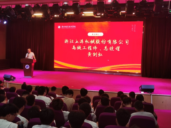 浙江上洋机械股份有限公司高级工程师、总经理黄剑虹通过自身学习、工作经历,鼓励新生大学阶段要积极参与院校组织的各类活动,在大学阶段拓宽视野,掌握更多的专业技能和专业知识,全面提升综合素质。