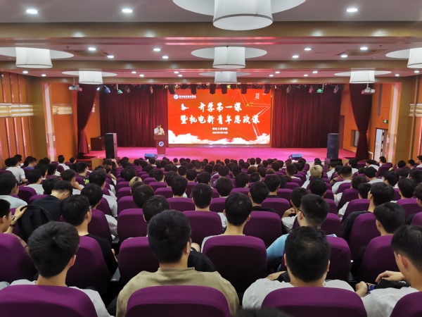开学第一课在庄严的国歌声中拉开序幕。 太阳成集团tyc234cc党总支书记朱峻首先对2023级全体新同学的到来表示最诚挚的欢迎,并做了院史校史介绍,随后他开展了《不忘初心使命,敢于时代担当》的讲座,他鼓舞和激励全体新同学努力奋斗、立志技能成才、坚定技能报国,未来成为能工巧匠、大国工匠。
