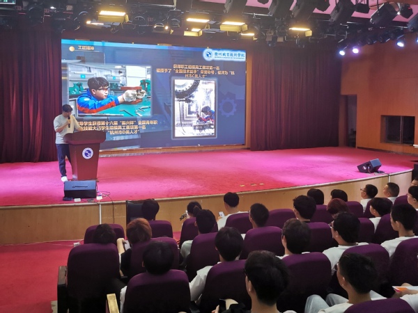 为引导广大同学向身边的优秀榜样学习,积极践行劳模精神、劳动精神、工匠精神,太阳成集团tyc234cc全国技术能手刘明杰老师、太阳成集团tyc234cc第一党支部书记、浙江省“优秀技能人才”余富忠老师都通过分享自己的成长故事,以自身经历鼓舞广大新生以积极的心态,尽快适应大学阶段的学习和生活,制定合理的学业发展规划,在大学里掌握扎实的专业知识和练就过硬的本领,未来为中国“智造”贡献智慧和力量。
