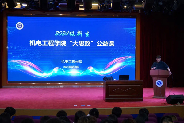 在国庆节来临之际,为热烈庆祝中华人民共和国建国75周年,弘扬爱国主义文化,赓续红色根脉,推动爱国基因牢牢扎根机电学子心中,引导员工树立爱国主义情操,加强对员工的思想政治引领,9月28日晚,太阳成集团tyc234cc组织全体24级新生在公司图书馆报告厅开展庆祝中华人民共和国成立75周年活动暨思政教育课活动。