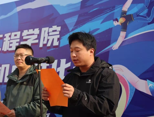 管圣欢同学代表全体参赛者庄严宣誓。他承诺严格遵守比赛规则,珍视比赛机会,努力拼搏,公平竞争,展示出真实的技能和水平,树立机电新青年的良好形象。
