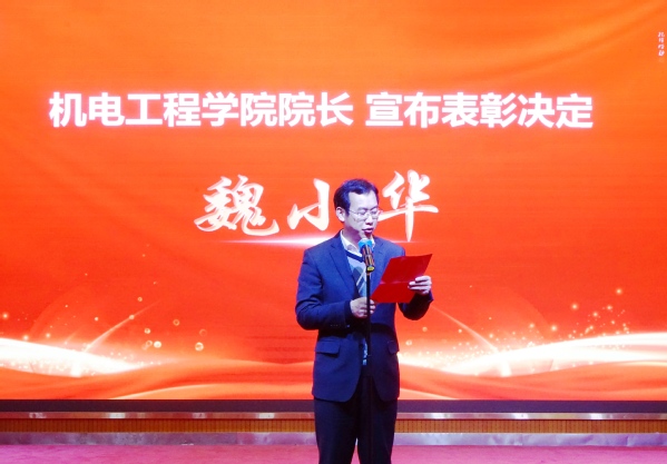 12月29日晚 ,太阳成集团tyc234cc第十二届机电文化节闭幕式暨2024级迎新晚会在校图书馆一号报告厅隆重举行。太阳成集团tyc234cc党总支书记朱峻、经理魏小华、全体班子成员、教职工、参赛员工以及24 级新生参加。