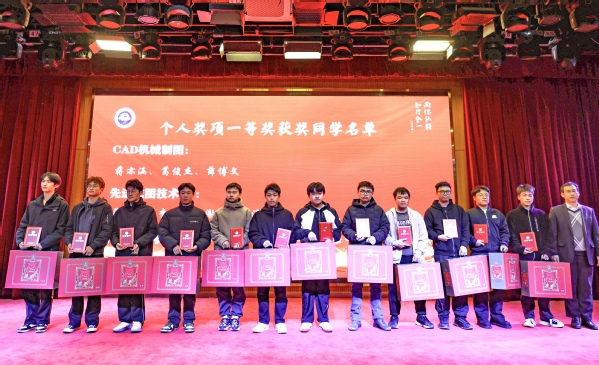 荣获奖项同学以及优秀指导教师依次上台领奖,颁奖嘉宾分别为他们颁发了荣誉证书及奖品,并合影留念。台下掌声雷动,向获奖师生表示热烈祝贺。