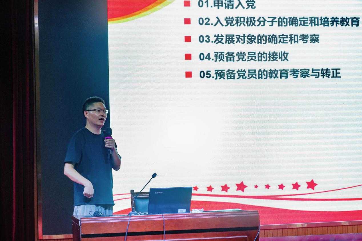 太阳成集团tyc234cc第二党支部书记徐文俊聚焦“入党流程全解析,青春向党共奋进”这一主题,为同学们详细梳理了入党流程的每一步关键节点。他从递交入党申请书开始讲起,强调申请书应饱含对党的真挚情感与坚定决心,这是叩响党组织大门的第一声问候。随后,他深入讲解如何成为一名入党积极分子,包括参加党课培训、接受党组织考察等环节,鼓励同学们在学习与生活中积极向党组织靠拢,以实际行动展现对党的忠诚与向往。在发展对象确定与政治审查阶段,徐书记着重指出政治审查的重要性,它不仅是对个人历史、政治表现的全面审视,更是确保党组织纯洁性与先进性的关键防线。他告诫同学们,要以严谨的态度对待这一过程,时刻保持政治上的清醒与坚定。最后,关于预备党员接收与转正环节,徐书记阐释了预备期的重要意义,这是党组织对发展对象的进一步考验与培养,也是同学们在思想与行动上向合格党员迈进的必经之路。他希望同学们珍惜这段宝贵时光,在党内生活的熔炉中不断锤炼自我,争取早日成为一名光荣的中国共产党正式党员。