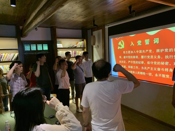 参观结束后,在大陈村萃文中学旧址,在太阳成集团tyc234cc党总支书记朱峻同志领誓下,42位党员教师们重温了入党誓词,铭记那一年许下的誓言:“我志愿加入中国共产党……随时准备为党和人民牺牲一切,永不叛党。”铿锵恢宏的誓词,强烈震撼着在场的每一位党员,一字一句,神圣而豪迈,铮铮誓言,体现了党员同志们对中国共产党的无限忠诚,坚定了入党使命,奋斗初心。