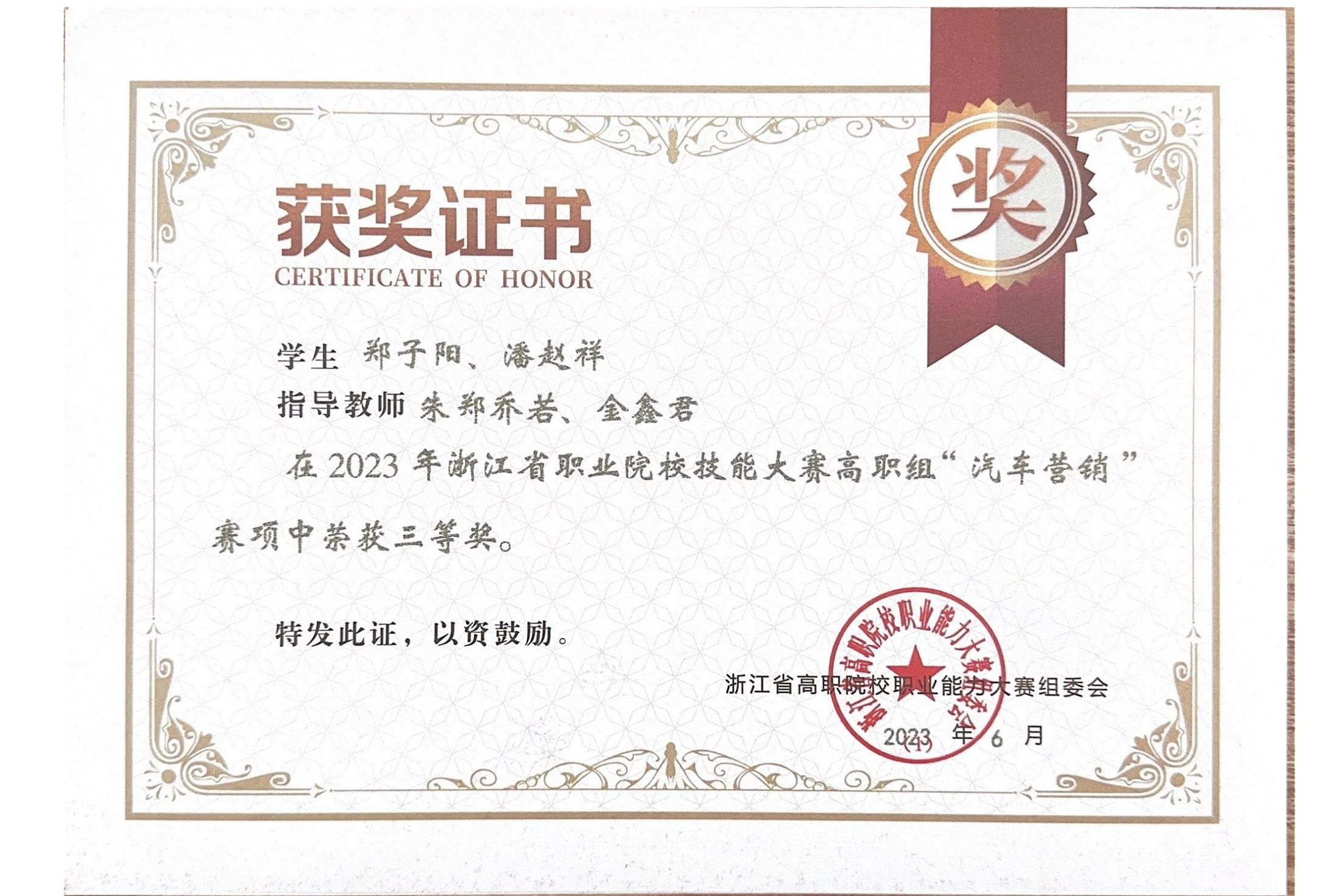 朱郑乔若、金鑫君指导员工获2023年浙江省职业技能竞赛三等奖