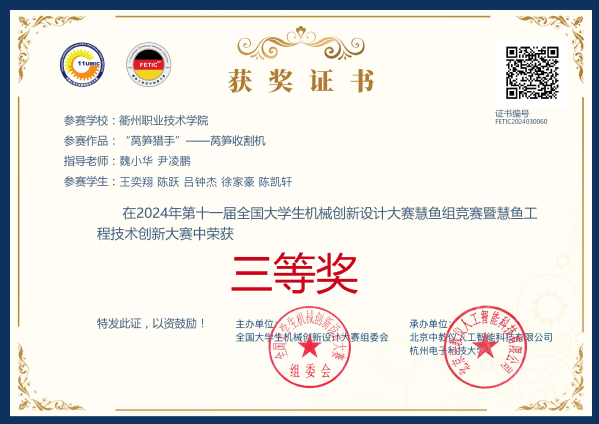 魏小华指导员工获2024年第十一届全国老员工机械创新设计大赛三等奖